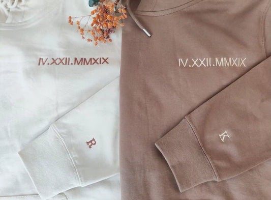 Custom Embroidered Anniversary Date Hoodie, Roman Numerals Couples Sweatshirt, Gifts for Her, Gifts for Him, Valentines Gift