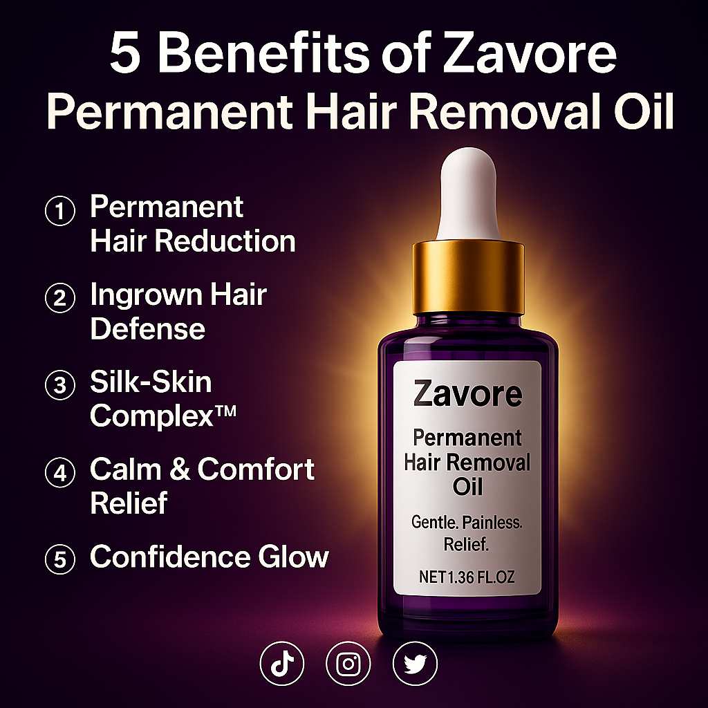 Shaving leaves cuts, waxing leaves scars — Zavore is the only permanent hair removal oil that leaves you smooth, pain-free, and confident for good.