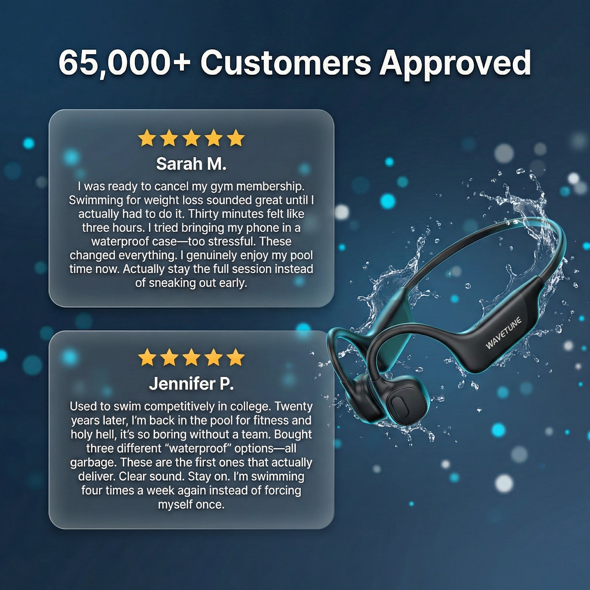 Crystal clear. We strive to have our customer to have "crystal clear underwater audio." Bone conduction sends sound through your cheekbones, not through water-filled ear canals.